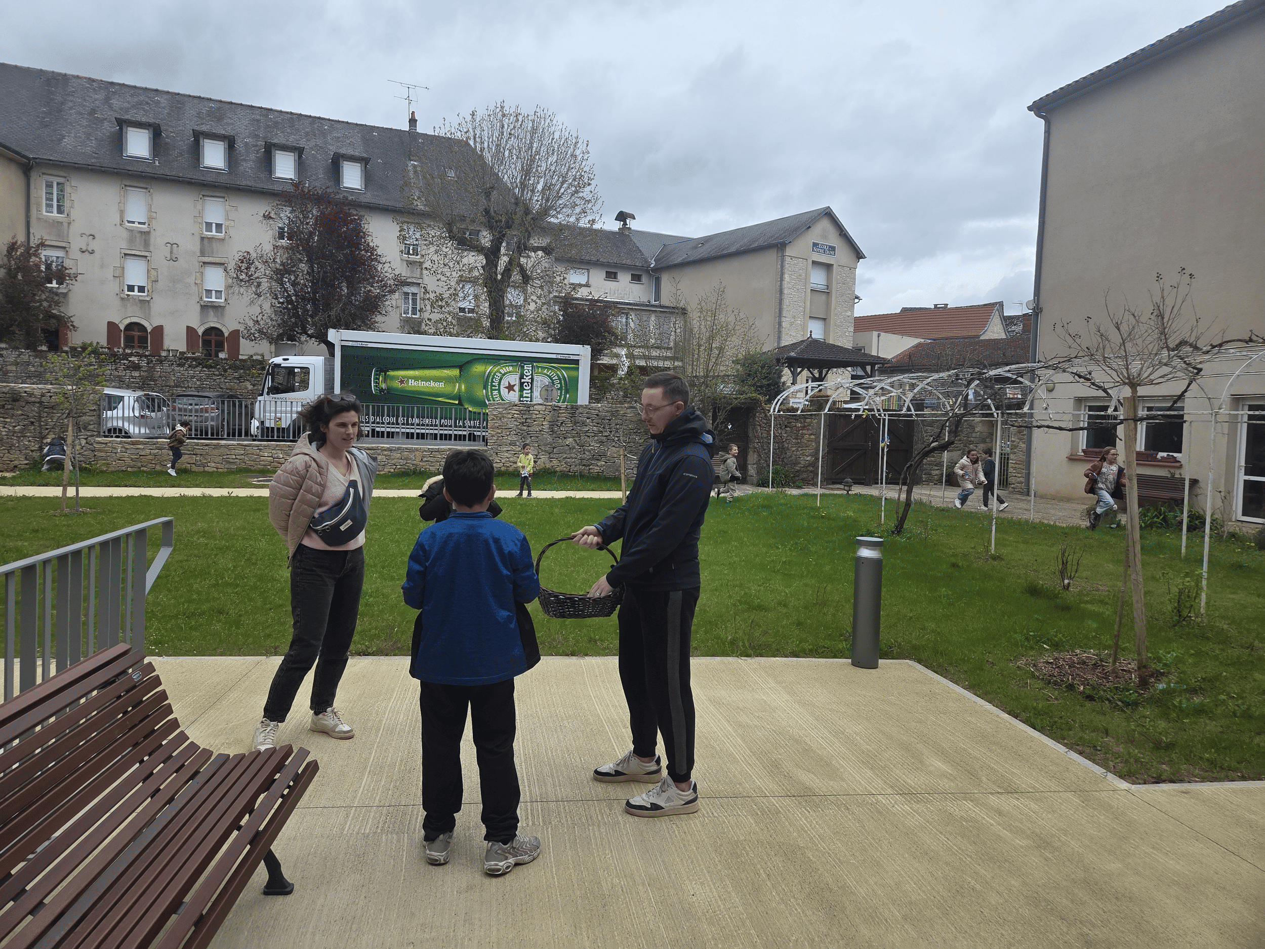 Cette année malgré la grisaille présente en ce mercredi 1er avril, cela n’a pas empêché les enfants du personnel et du centre aéré, de ramasser les œufs cachés dans le jardin.